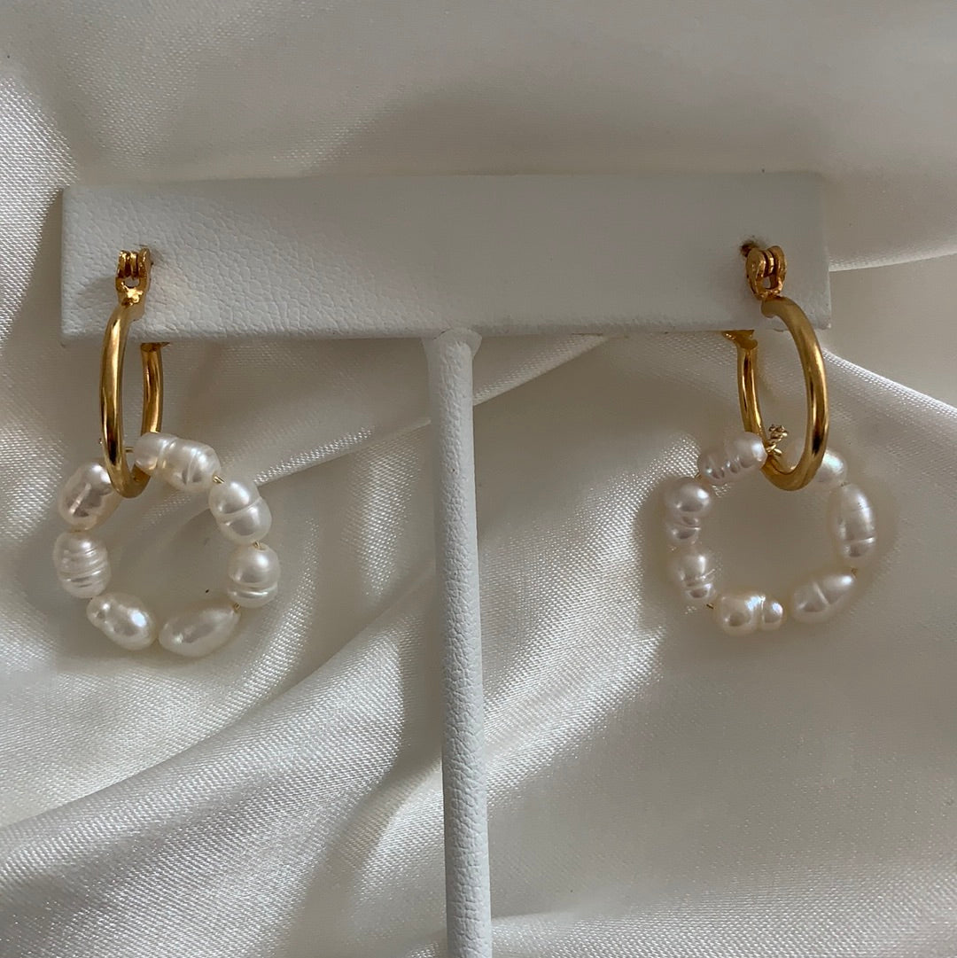 Aretes chapa de oro de 18K con perla natural.