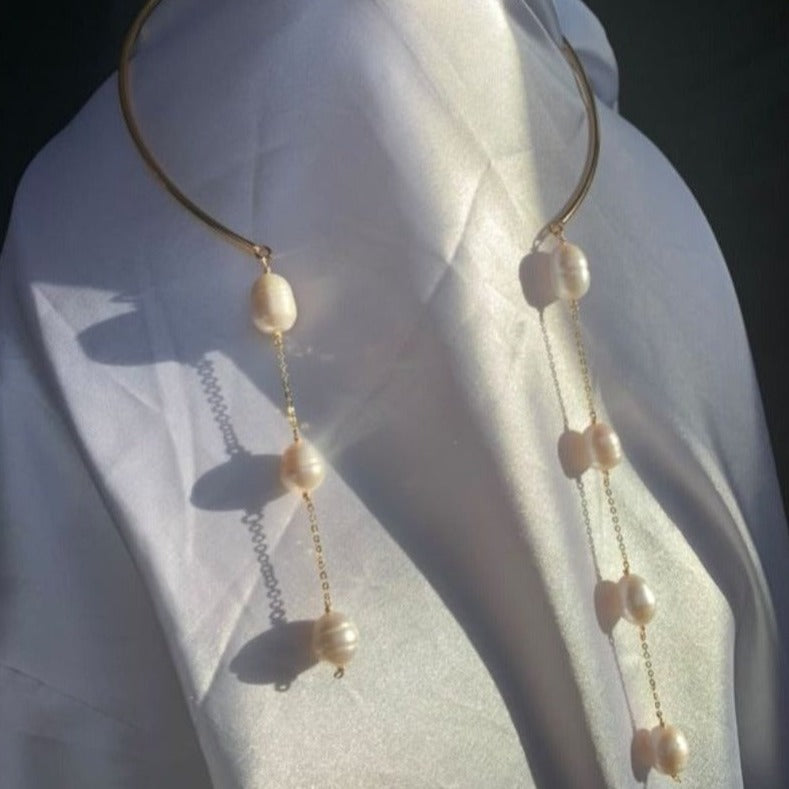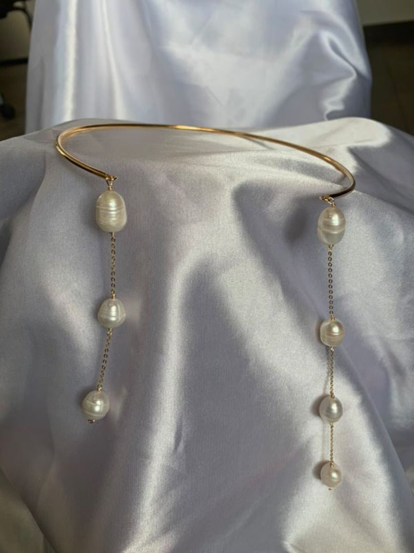 Gargantilla con tres baños de oro con perlas naturales.